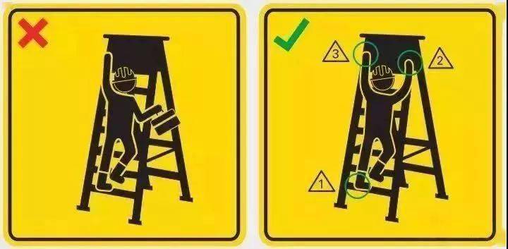 6、使用梯子時,必須維持三個接觸點的攀爬法。